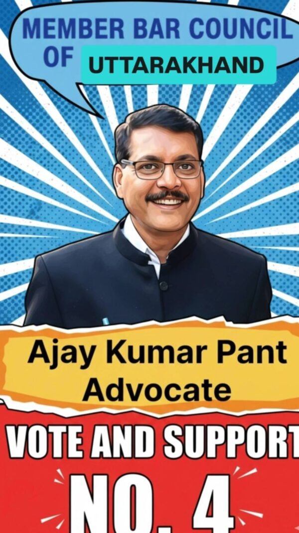 कोटद्वार । उत्तराखंड प्रदेश बार काउंसिल चुनाव में इस समय अधिवक्ता अजय कुमार पंत पर अधिवक्ता समुदाय का सबसे अधिक भरोसा और समर्थन दिखाई देता नजर आ रहा है, कारण उनकी ईमानदार छवि, स्पष्ट सोच और अधिवक्ता हितों के प्रति अटूट समर्पण ने उन्हें पूरे प्रदेश में अधिवक्ताओं का चहेता और चर्चित चेहरा बना दिया है।
