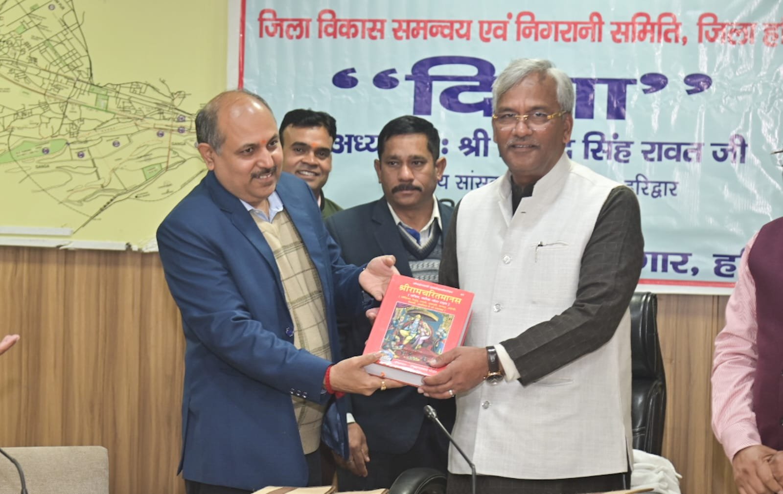 - सासंद त्रिवेंद्र सिंह रावत का जनपद आगमन पर जिलाधिकारी मयूर दीक्षित ने पुष्प गुच्छ एवं श्रीमद भगवद् गीता व रामचरित मानस भेंटकर स्वागत किया।