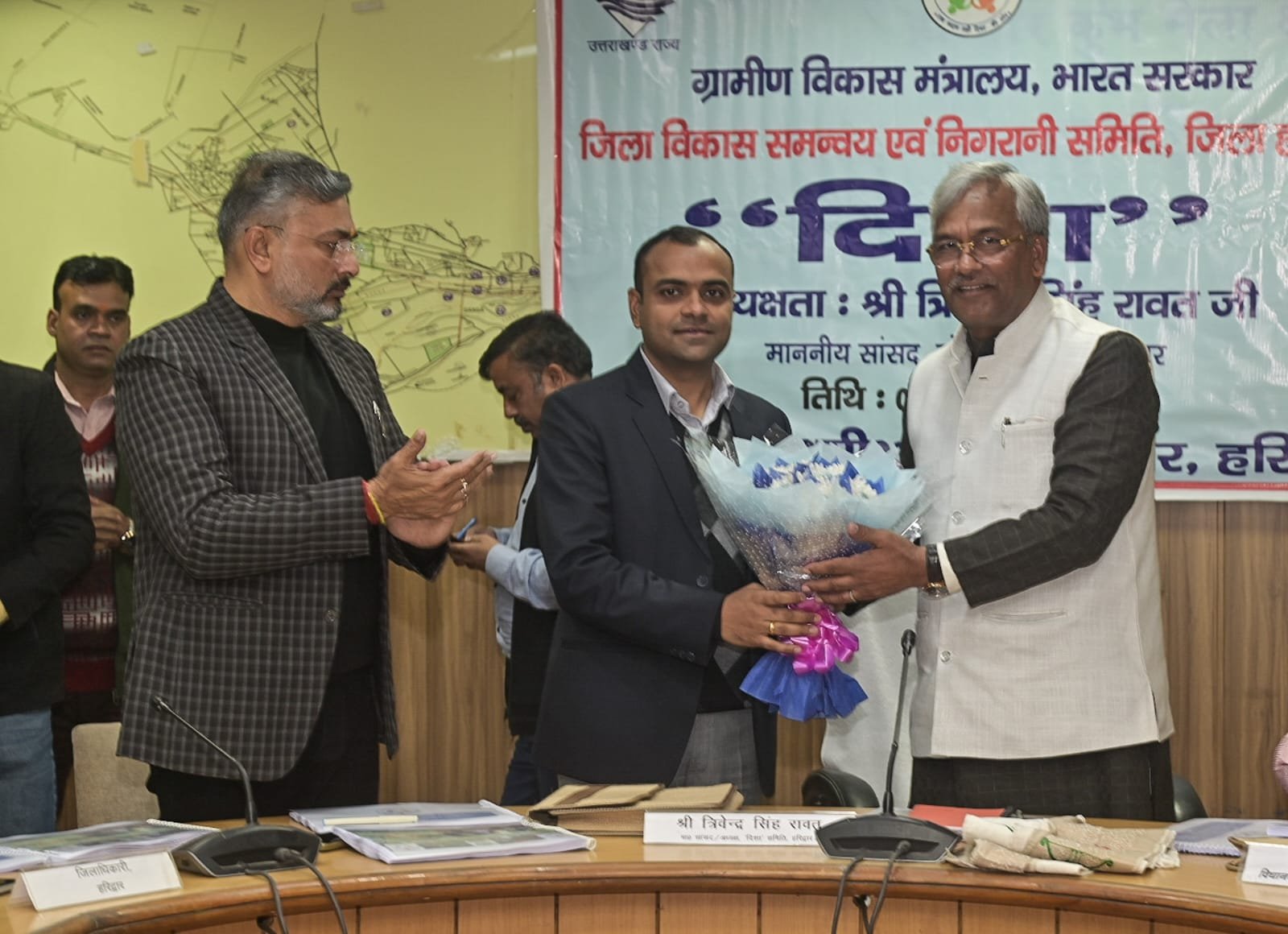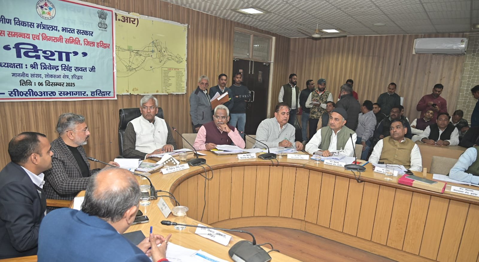 हरिद्वार : लोक सभा सांसद त्रिवेन्द्र सिंह रावत की अध्यक्षता में मेला नियत्रण कक्ष सीसीआर के सभा कक्ष में जिला विकास समन्व्य एवं निगरानी समिति (दिशा) की बैठक आयोजित की गई जिसमें विभिन्न विभागों के माध्यम से केन्द्र सरकार द्वारा संचालित जल कल्याणकारी योजनाओं की विभागवार समीक्षा की गई तथा पूर्व बैठक में दिए गये निर्देशों में की गई कार्यवाही की विभागवार समीक्षा की गई। सासंद ने संविधान निर्माता डॉ भीमराव अंबेडकर की पुण्यतिथि पर उनके चित्र पर पुष्प माला अर्पित करते हुए उन्हें नमन कर श्रद्धांजलि अर्पित की गई।