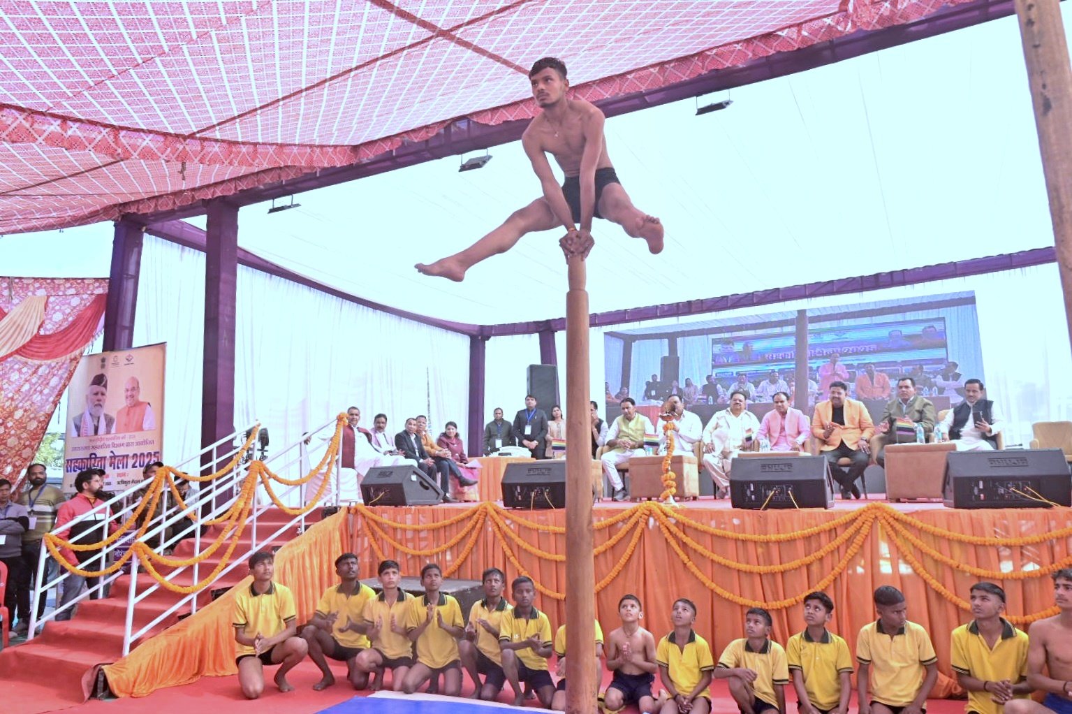 इस अवसर पर आयोजित कार्यक्रम में बच्चों ने मलखम का उत्कृष्ट प्रदर्शन किया तथा छात्र छात्राओं द्वारा योग अभ्यास सहित विभिन्न प्रतियोगिता एवं सांस्कृतिक कार्यक्रमों का आयोजन किया जिसमें उन्होंने सभी छात्र छात्राओं को बधाई एवं शुभकामना दी एवं उनके उज्वल भविष्य की कामना की। इस अवसर पर मुख्य अतिथि सहकारिता मंत्री को पुष्प गुच्छ भेंटकर स्वागत किया तथा शॉल एवं स्मृति चिन्ह भेंटकर सम्मानित किया ।