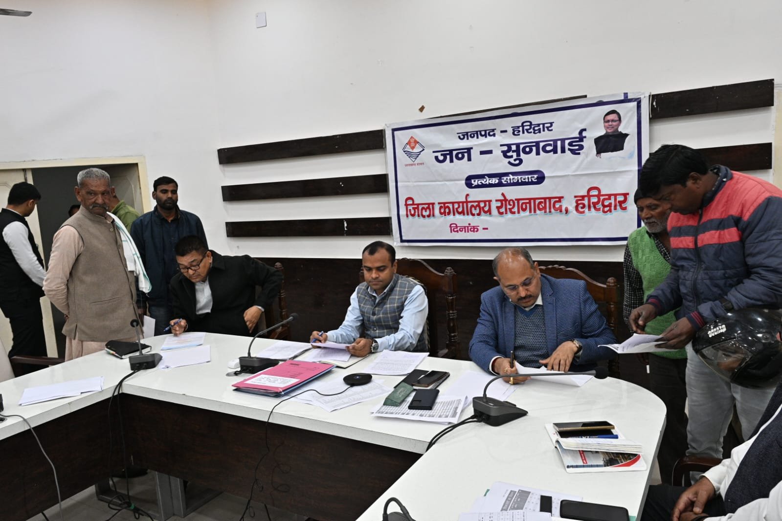 हरिद्वार : जनपदवासियों की समस्याओं का त्वरित निराकरण करने के उद्देश्य से जिलाधिकारी मयूर दीक्षित की अध्यक्षता में जिला कार्यालय सभागार में जन सुनवाई कार्यक्रम आयोजित किया गया, जिसमें विभिन्न विभागों से संबंधित 78 शिकायते/ समस्याएं दर्ज कराई गई जिसमें से 42 समस्याओं का मौके पर निराकरण किया गया शेष समस्याओं को निस्तारण हेतु संबंधित विभागों को प्रेषित किया गया। जनसुनवाई कार्यक्रम में राजस्व, भूमि , विवाद, विद्युत, राशन, अतिक्रमण, पेयजल, पंचायतीराज, शिक्षा आदि से संबंधित समस्या दर्ज कराई गई।