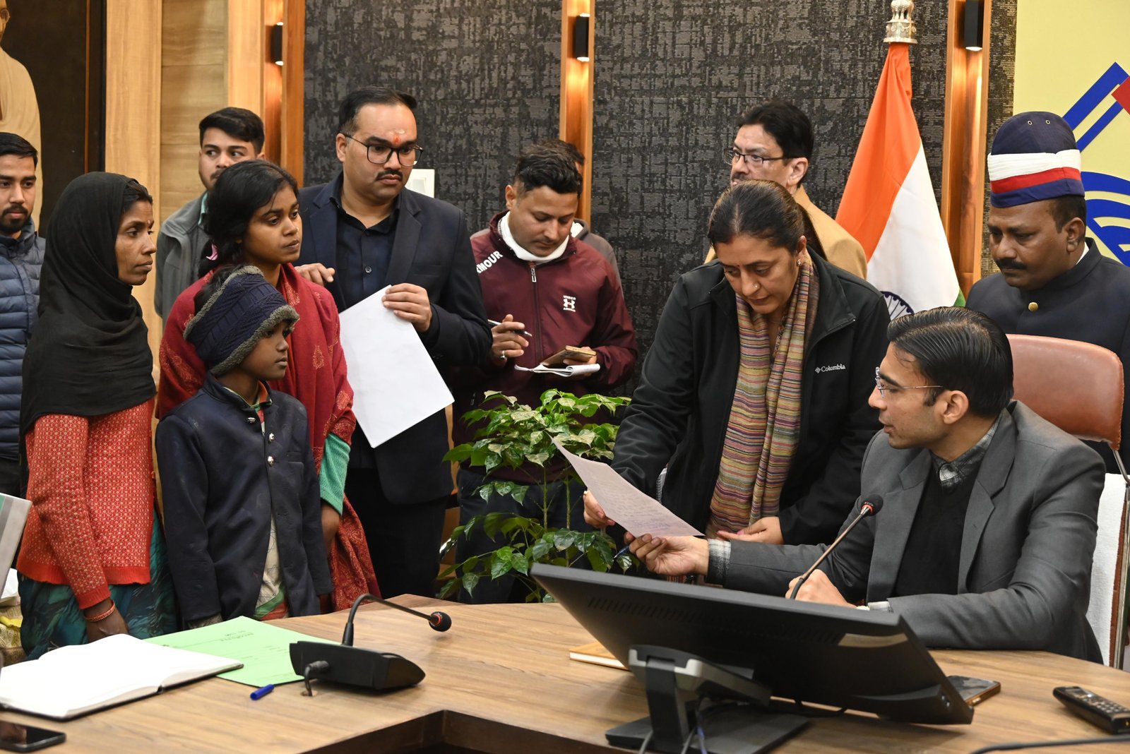 ओगल भट्टा निवासी एकल माता मोनिका की दो बेटियों की शिक्षा पुनर्जीवित करने हेतु प्रोजेक्ट नंदा-सुनंदा के अंतर्गत सहयोग प्रदान किए जाने के निर्देश दिए गए। जिलाधिकारी ने संबंधित अधिकारियों को कमेटी के माध्यम से परीक्षण कर शीघ्र कार्यवाही सुनिश्चित करने को कहा।
