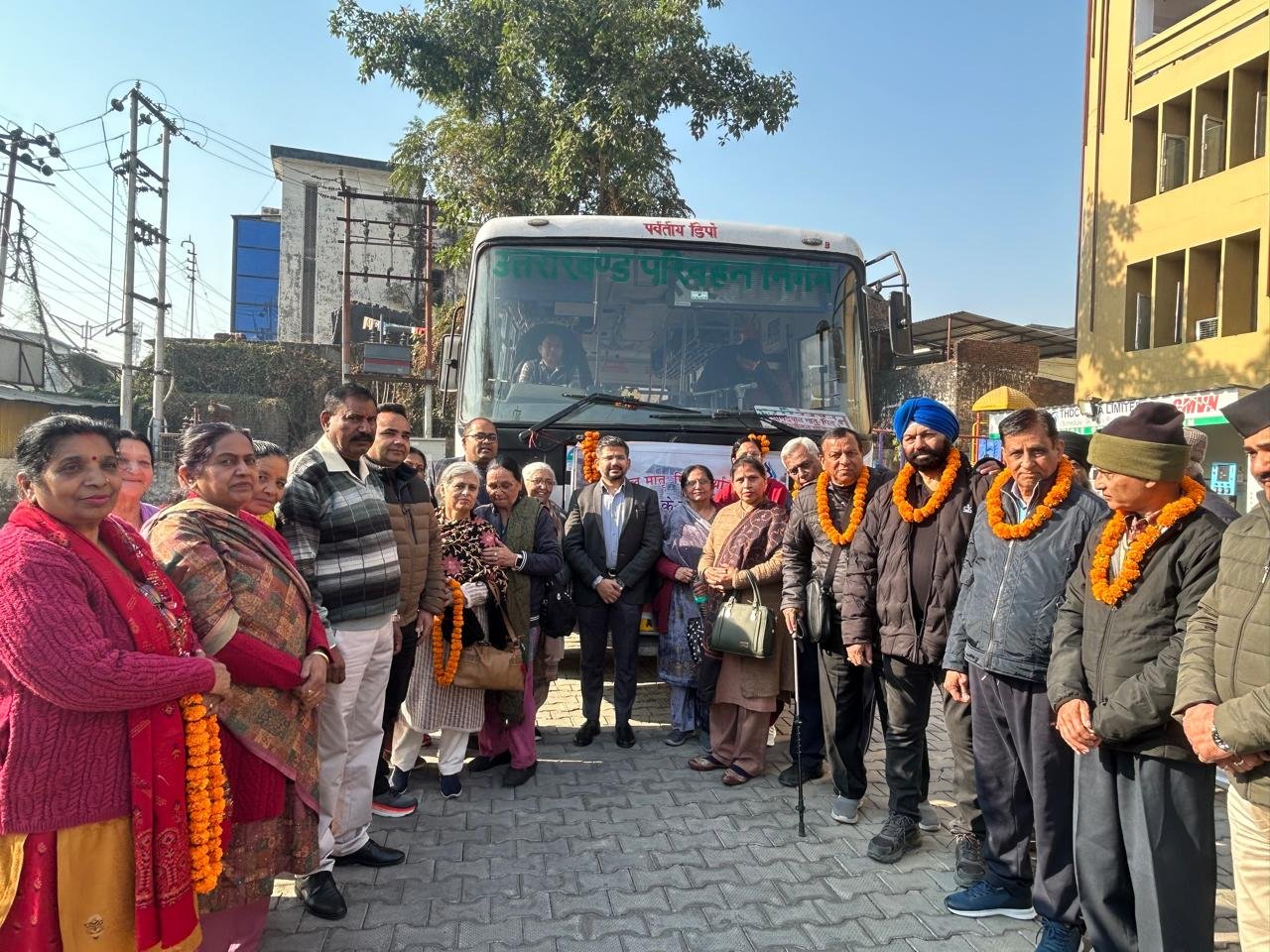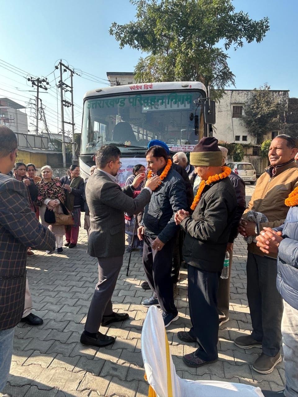 देहरादून : पं. दीन दयाल मातृ पितृ तीर्थाटन योजना के तहत 60 वर्ष से अधिक आयु के 27 तीर्थयात्रियों का पहला दल सोमवार को जनपद देहरादून से जागेश्वर धाम अल्मोड़ा के लिए रवाना किया गया। मुख्य विकास अधिकारी अभिनव शाह ने सोमवार को गढ़वाल मंडल विकास निगम, द्रोणागिर होटल से तीर्थयात्रियों के इस दल को हरी झंडी दिखाकर रवाना किया। तीर्थयात्रियों का यह दल पहले दिन सोमवार को भीमताल में प्रवास करेगा। दूसरे दिन जागेश्वर धाम और तीसरे दिन वापस भीमताल में प्रवास करने के बाद 04 दिसंबर,2025 को देहरादून पहुंचेगा। मुख्य विकास अधिकारी ने सभी बुजुर्ग की तीर्थयात्रा की मंगल कामना के साथ दल को रवाना किया गया। इस अवसर पर जिला पर्यटन विकास अधिकारी बृजेन्द्र पांडेय सहित अन्य अधिकारी भी मौजूद थे।