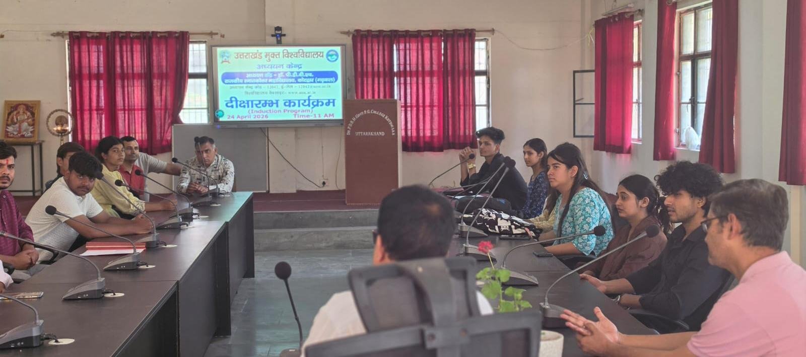कोटद्वार : उत्तराखण्ड मुक्त विश्वविद्यालय (UOU) के अध्ययन केंद्र, राजकीय स्नातकोत्तर महाविद्यालय, कोटद्वार (कोड: 12042) में आज एक भव्य इंडक्शन प्रोग्राम (दीक्षा समारोह) का आयोजन किया गया। यह कार्यक्रम केंद्र के प्राचार्य की अध्यक्षता में संपन्न हुआ, जिसका मुख्य उद्देश्य नए प्रवेश लेने वाले छात्रों को विश्वविद्यालय की कार्यप्रणाली और शैक्षणिक गतिविधियों से परिचित कराना था।