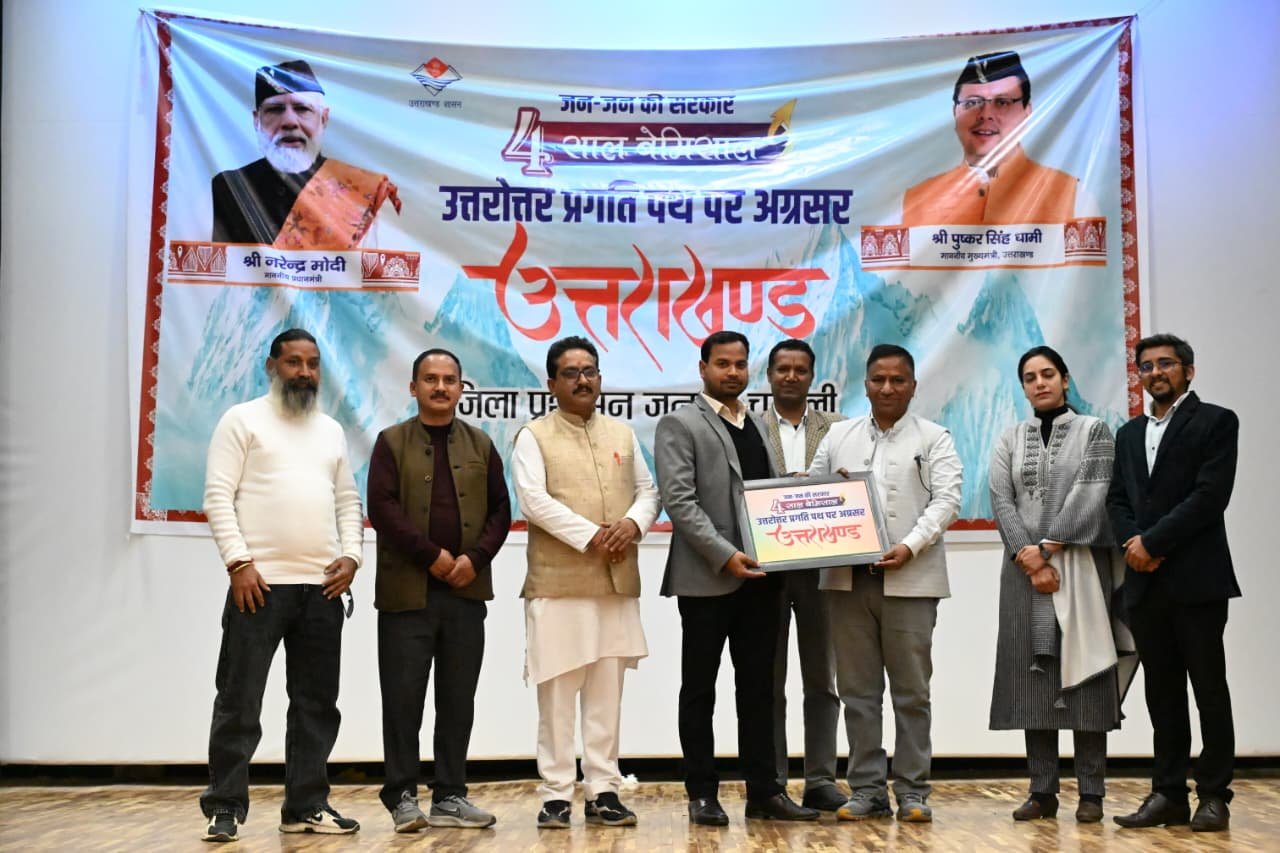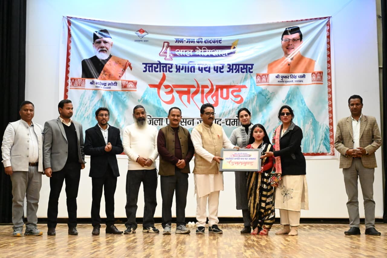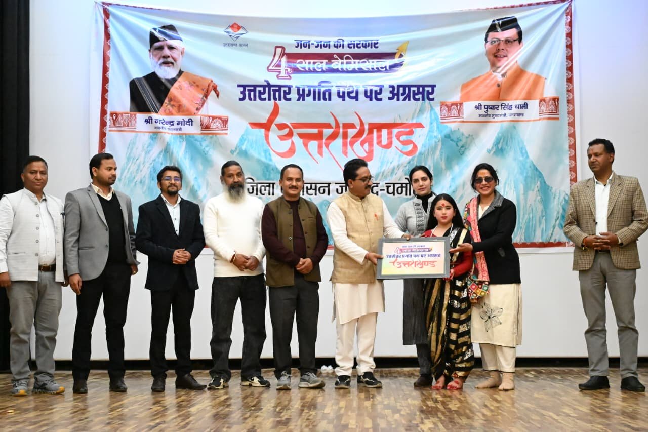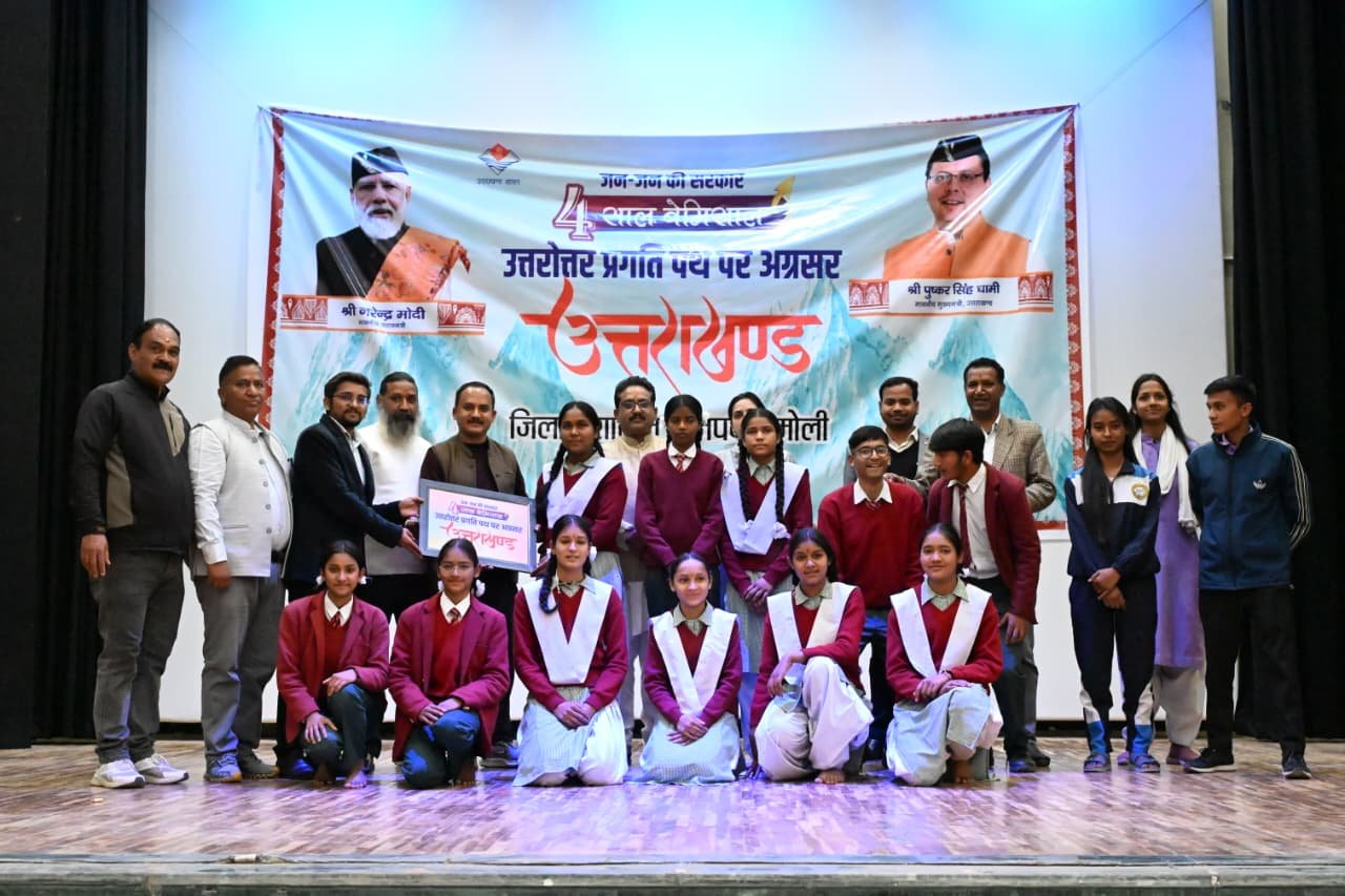 चमोली : “जन-जन की सरकार, 4 साल बेमिसाल” कार्यक्रम के तहत बुधवार को जनपद मुख्यालय गोपेश्वर स्थित पीजी कॉलेज में भव्य कार्यक्रम आयोजित कर विभिन्न सांस्कृतिक एवं खेल प्रतियोगिताओं में प्रतिभाग करने वाले प्रतिभागियों को सम्मानित किया गया। कार्यक्रम का शुभारंभ प्रदेश कार्यसमिति सदस्य भाजपा उत्तराखंड/जिला सह प्रभारी रुद्रप्रयाग रघुवीर सिंह बिष्ट द्वारा माँ सरस्वती के चित्र पर दीप प्रज्ज्वलन कर किया गया। कार्यक्रम में जनपद के विभिन्न विद्यालयों के छात्र-छात्राओं, अधिकारियों एवं कर्मचारियों की गरिमामयी उपस्थिति रही, जिससे आयोजन में उत्साह और ऊर्जा का वातावरण बना रहा।