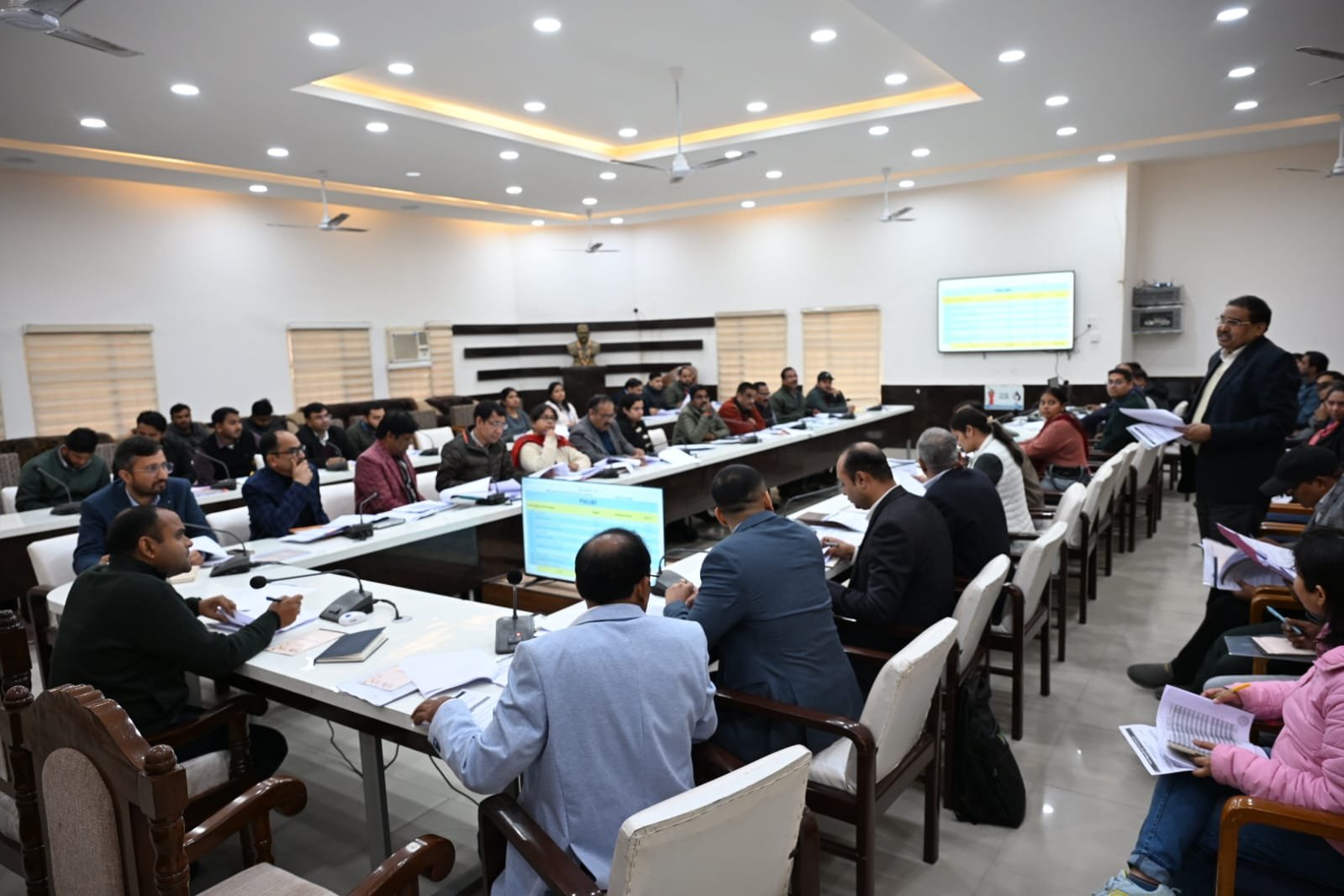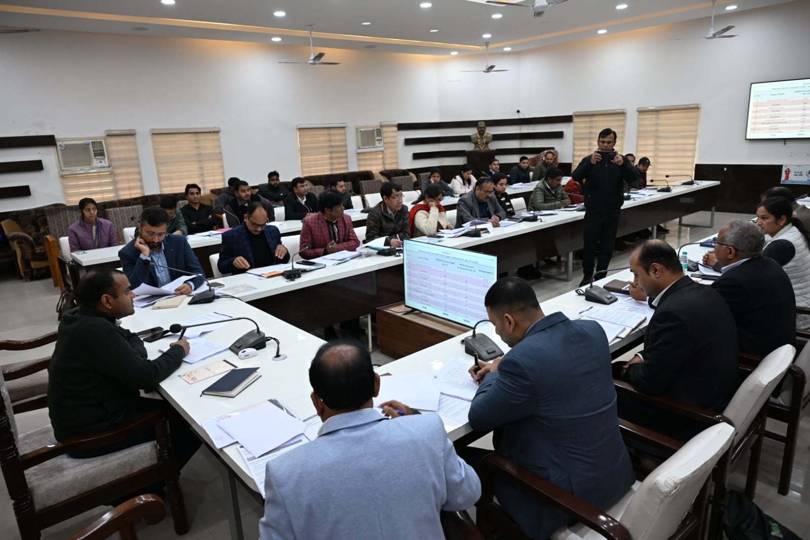 बैठक की समीक्षा करते हुए जिलाधिकारी मयूर दीक्षित ने पाया कि कई बैंकों के शाखा प्रबन्धक/ प्रतिनिधि  बैठक में उपस्थित नहीं हुए,जिसपर उन्होंने नाराजगी व्यक्त करते हुए लीड बैंक अधिकारी को संबंधित बैंक प्रबंधकों को कारण बताओ नोटिस निर्गत करने के निर्देश दिए, उन्होंने सभी बैंक प्रबंधकों को एवं संबंधित अधिकारियों को निर्देश दिए है कि वित्तीय वर्ष समाप्ति की ओर है तथा विभिन्न योजनों के लंबित आवेदन पत्रों को संबंधित अधिकारी आपसी समन्वय के साथ उनका निस्तारण करते हुए लंबित आवेदन पत्रों के आवेदकों को ऋण उपलब्ध कराना सुनिश्चित करे,इसमें किसी भी प्रकार की कोई शिथिलता एवं ढिलाई न बरती जाए।