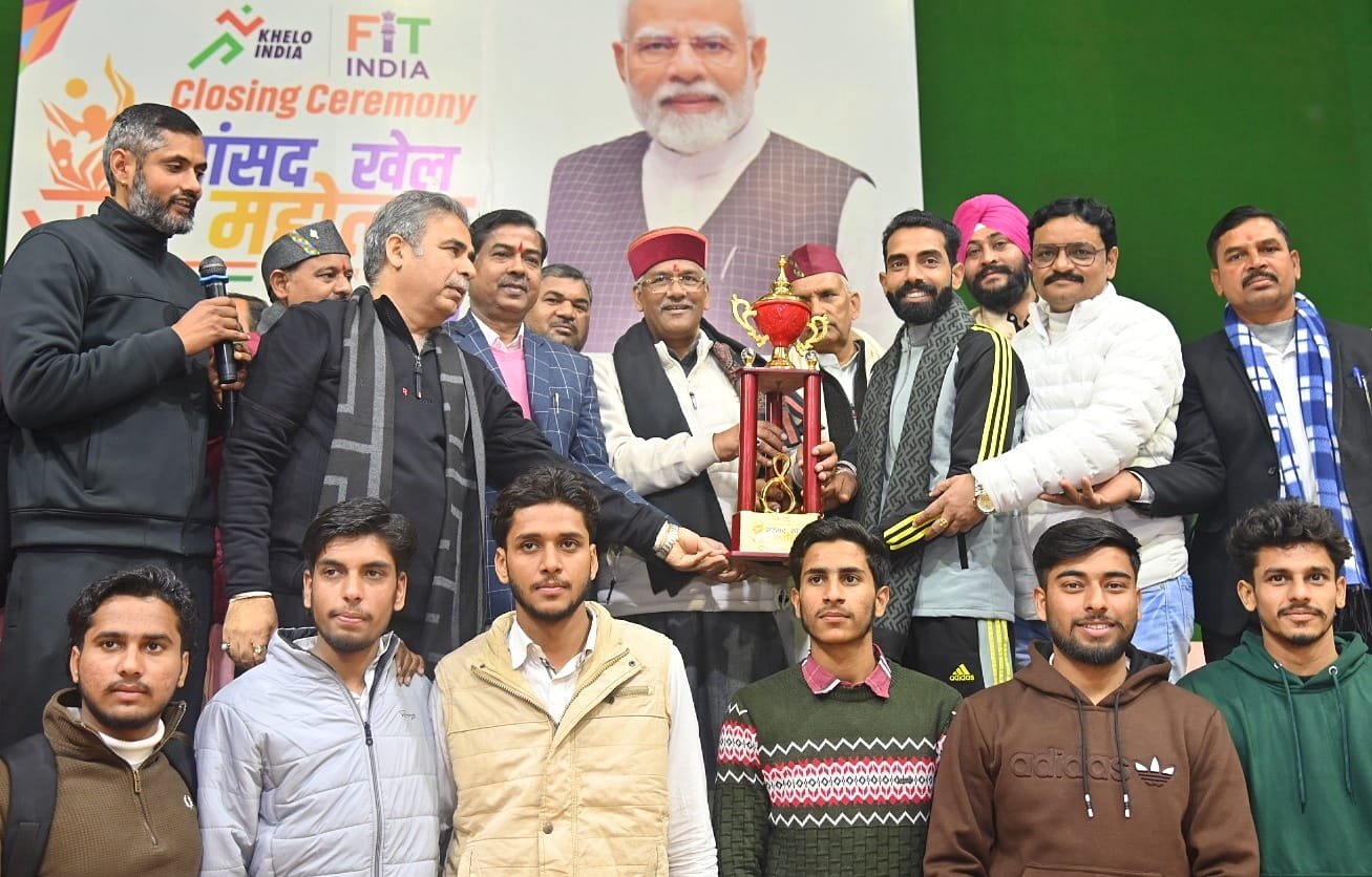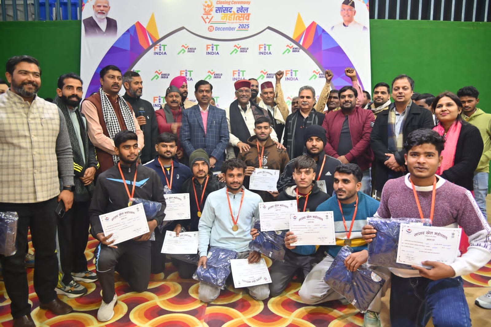 सासंद खेल महोत्सव के समापन अवसर पर आयोजित की गई विभिन्न खेल प्रतियोगिताओं में प्रथम, द्वितीय स्थान पर रही टीमों को प्रशस्ति पत्र एवं मेडल देकर सम्मति किया गया।सासंद खेल महोत्सव प्रतियोगिता की ट्रॉफ़ी विधान सभा खानपुर ने अधिक अंक अर्जित करने पर हासिल की।