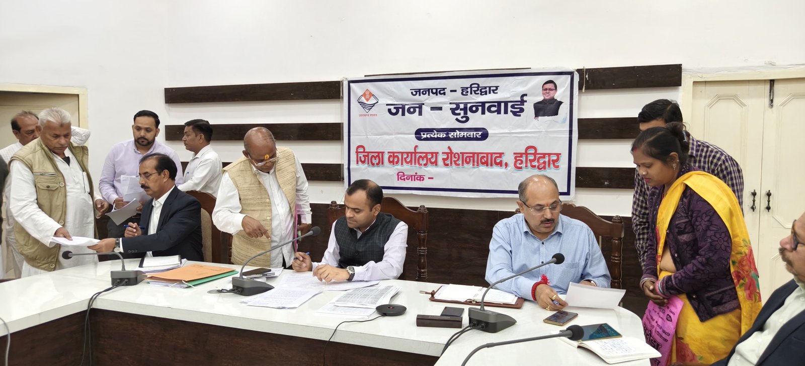 हरिद्वार : जनपदवासियों की समस्याओं का त्वरित निराकरण करने के उद्देश्य से जिलाधिकारी मयूर दीक्षित की अध्यक्षता में प्रत्येक सोमवार को जिला कार्यालय सभागार में जन सुनवाई कार्यक्रम आयोजित किया जा रहा है, जिसमें विभिन्न विभागों से संबंधित 72 शिकायतकर्ताओं ने अपनी समस्याएं दर्ज कराई गई जिसमें 31 समस्याओं का मौके पर निराकरण किया गया शेष समस्याओं हेतु संबंधित विभागों को तत्काल कार्यवाही हेतु प्रेषित किया गया।