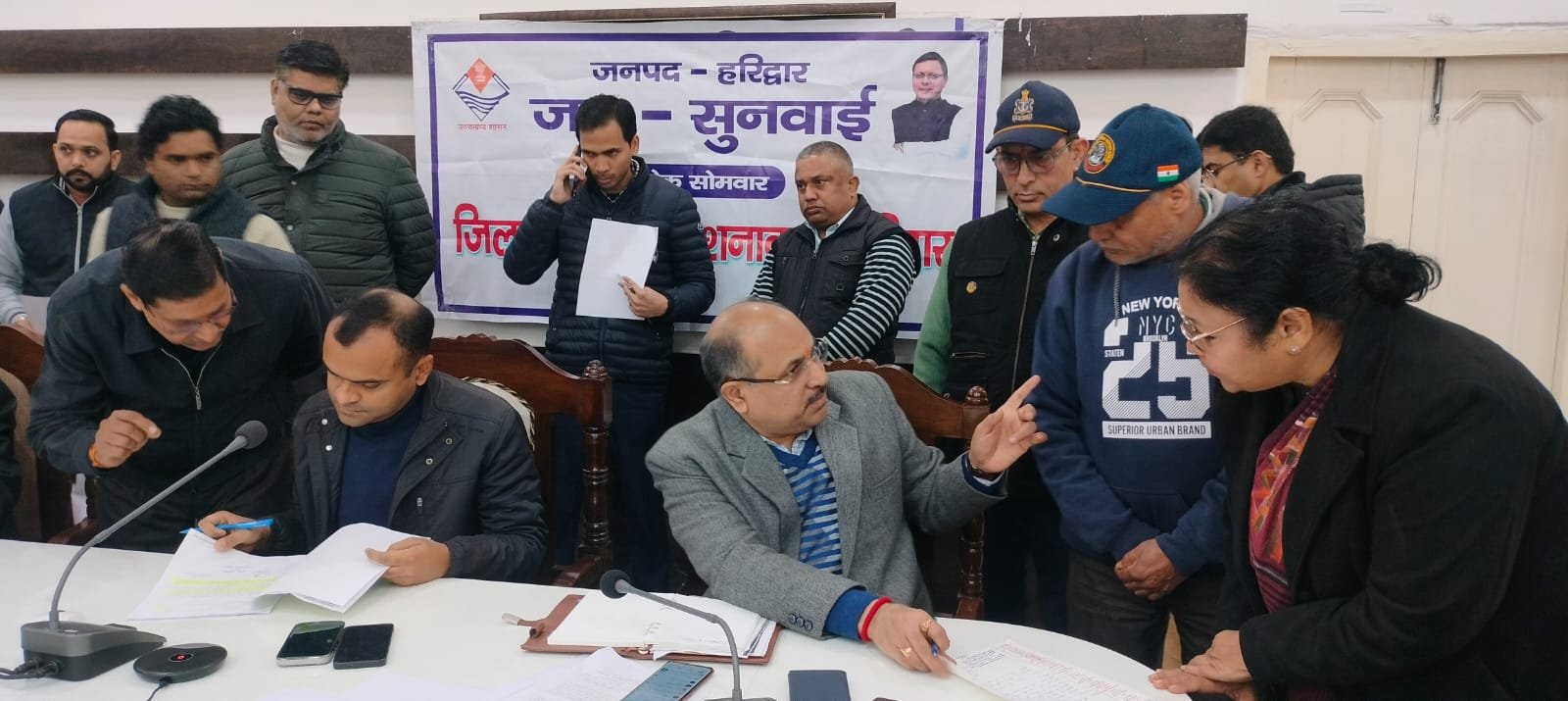 हरिद्वार : जनपदवासियों की समस्याओं का त्वरित निराकरण करने के उद्देश्य से जिलाधिकारी मयूर दीक्षित की अध्यक्षता में जिला कार्यालय सभागार में जन सुनवाई कार्यक्रम आयोजित किया गया, जिसमें विभिन्न विभागों से संबंधित 87 शिकायते/ समस्याएं दर्ज कराई गई जिसमें से 42 समस्याओं का मौके पर निराकरण किया गया शेष समस्याओं को निस्तारण हेतु संबंधित विभागों को प्रेषित किया गया। जनसुनवाई कार्यक्रम में राजस्व, भूमि, विवाद, विद्युत, राशन अतिक्रमण, पेयजल आदि से संबंधित समस्या दर्ज कराई गई।